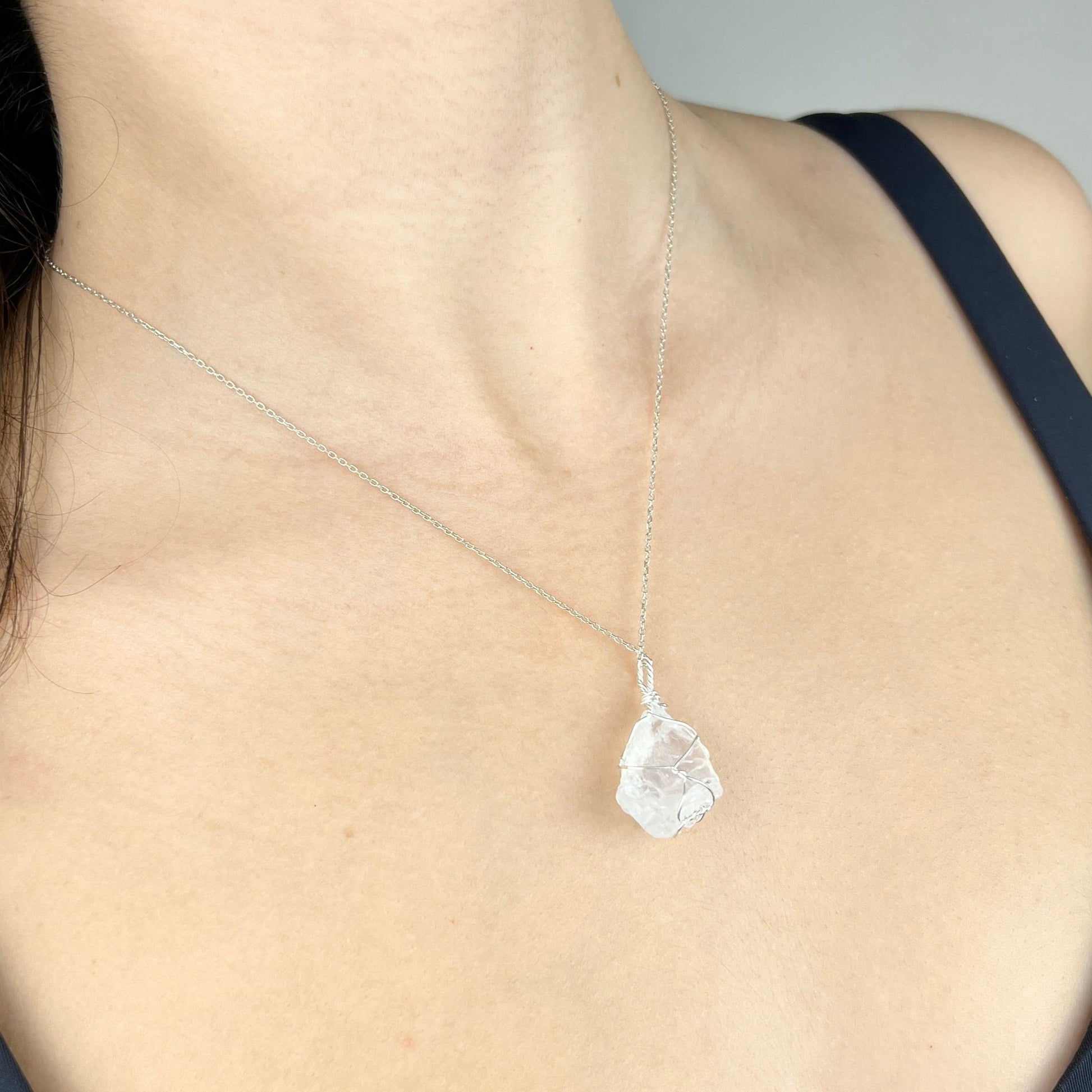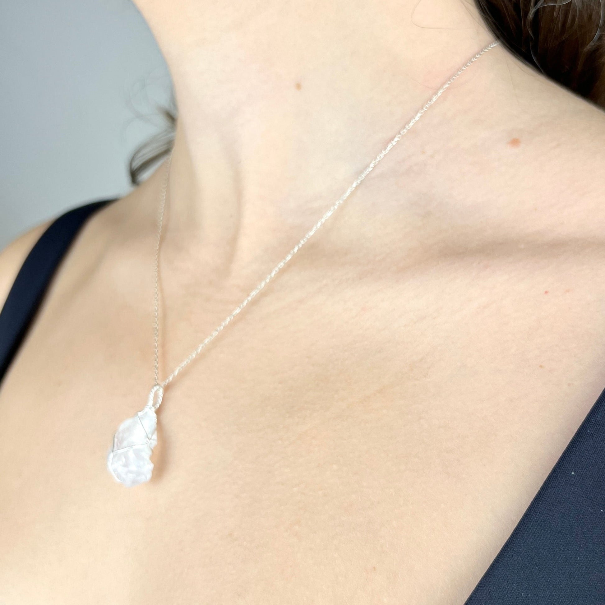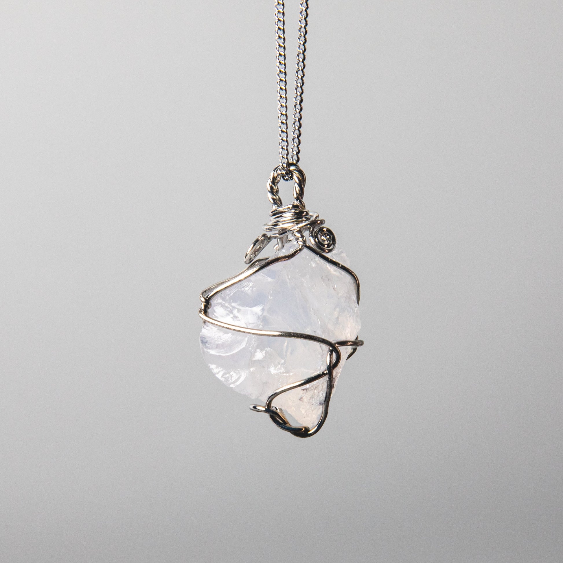 Rohe Mondsteinkette, mit Silberdraht umwickelt