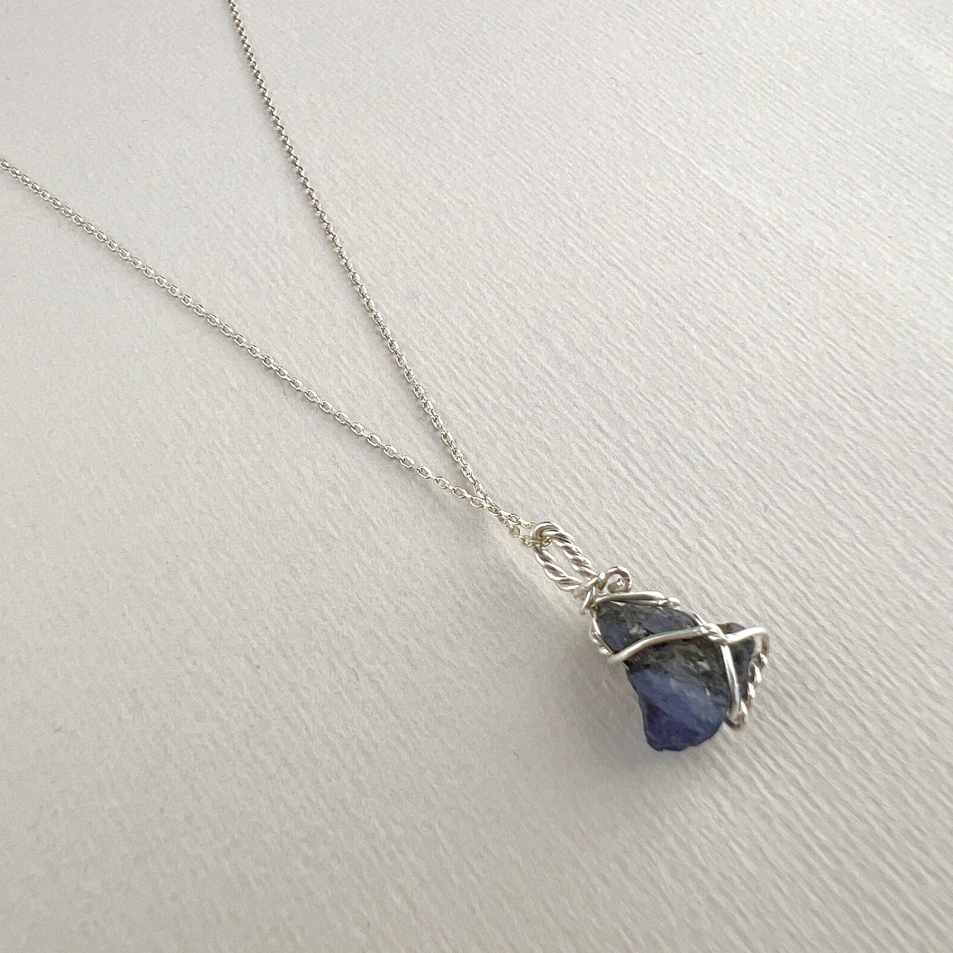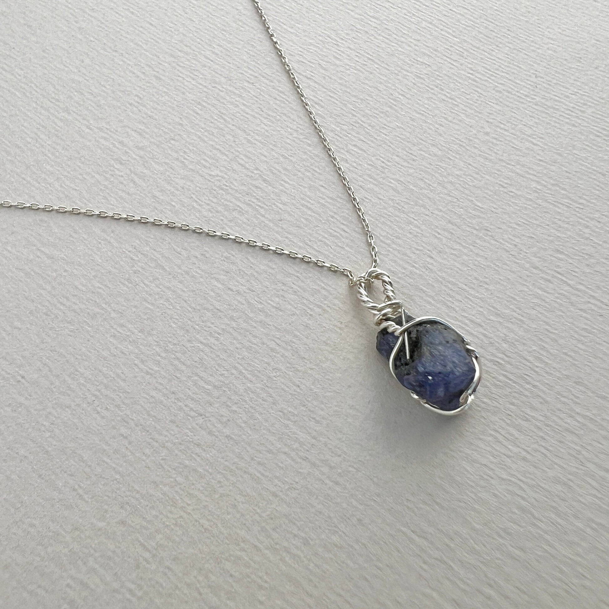 Rohe Tansanit-Halskette, mit Silberdraht umwickelt