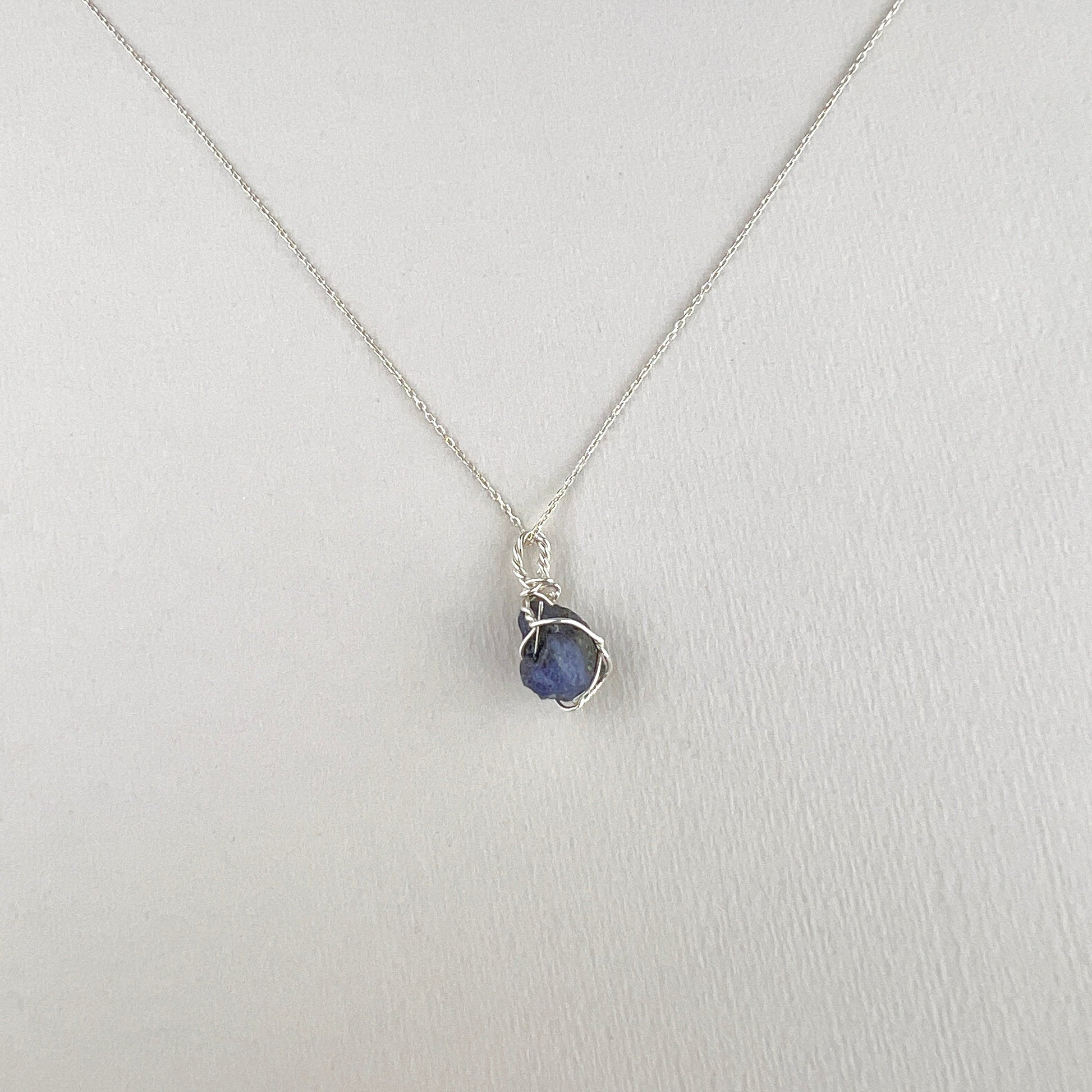 Minimalistische, zierliche Tansanit-Halskette, zart in Sterlingsilber eingewickelt. Tansanit ist für seine bezaubernden violett-blauen Farbtöne bekannt und strahlt ein Gefühl von Raffinesse und Anziehungskraft aus. Als Stein der Transformation und des spirituellen Wachstums schwingt er mit den höheren Chakren mit und stimuliert Intuition und Einsicht.